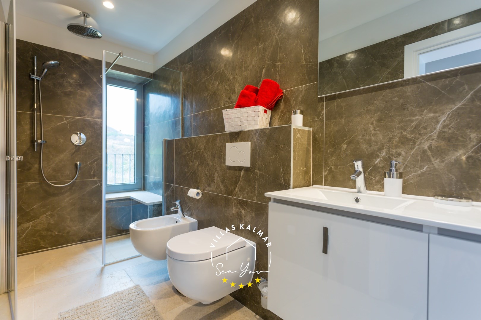 Kupaonica #1: umivaonik, WC, bide, walk-in tuš